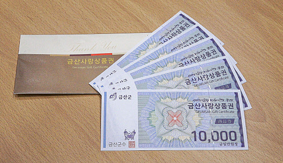 지역사랑상품권은 크게 두 가지로 나눌 수 있습니다. 첫 번째는 종이 상품권이고, 두 번째는 모바일 상품권이 있습니다. 종이 상품권은 지류 형태로 발행되어 실물로 보유할 수 있고, 모바일 상품권은 스마트폰 앱을 통해 관리할 수 있습니다. 아래 이미지는 금산사랑상품권의 예시입니다.